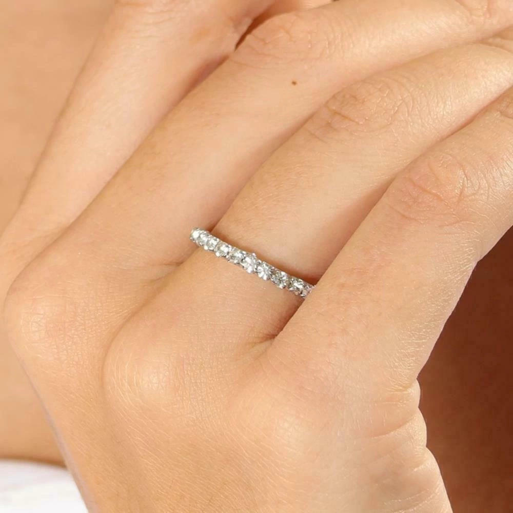 O anel Léia tem um belo banho de ródio que lhe confere um brilho intenso. Sua cravação em pavê é delicada e bem feita, e as zircônias cristal espalhadas pela peça proporcionam um brilho ainda maior. O design slim do anel o torna elegante e discreto, perfeito para ser usado em diversas ocasiões.
