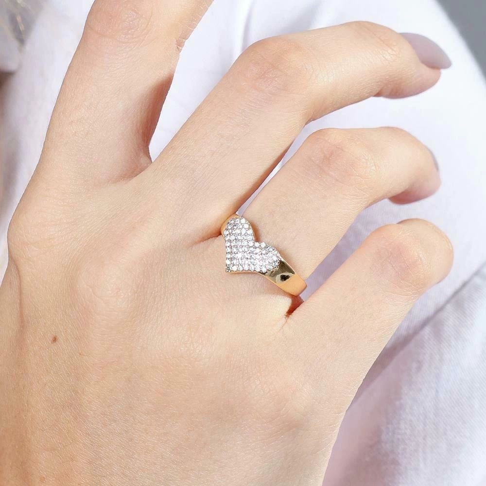 O anel "Shine Heart" é uma peça elegante e sofisticada, com banho de ouro e cravação por pavê, feita para brilhar. O design apresenta um coração imponente e central, cravejado com diversas zircônias cristal, que chama a atenção pela beleza e delicadeza da peça. O anel é perfeito para quem busca uma joia romântica e cheia de estilo, que combina com diversas ocasiões.