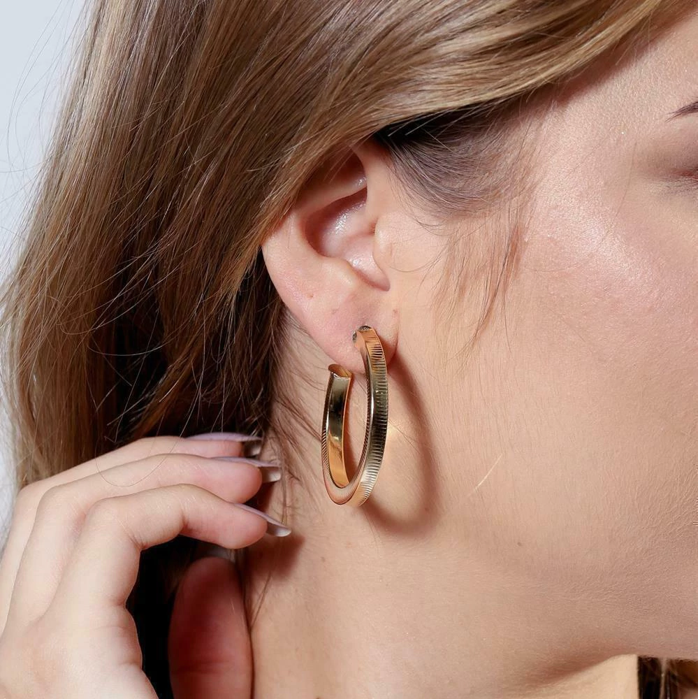 O brinco Sara é uma peça de destaque com uma argola banho de ouro em formato mais grossinho. Sua elegância e sofisticação fazem dele uma escolha ideal para quem busca uma peça versátil que possa ser usada tanto em ocasiões especiais como no dia a dia.